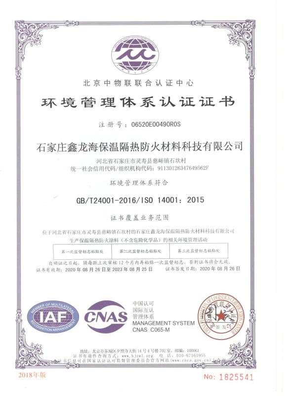 環(huán)境管理體系認證證書