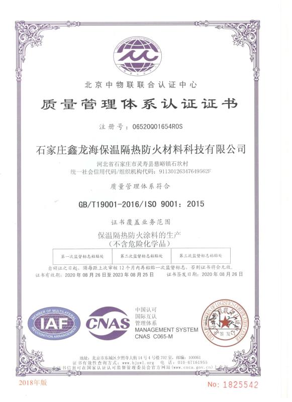 質(zhì)量管理體系認證證書